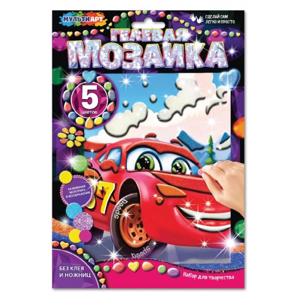 С помощью этого набора юный художник сможет самостоятельно создать необычную аппликацию с изображением забавной машинки. Готовую поделку можно подарить близким или использовать для украшения интерьера.