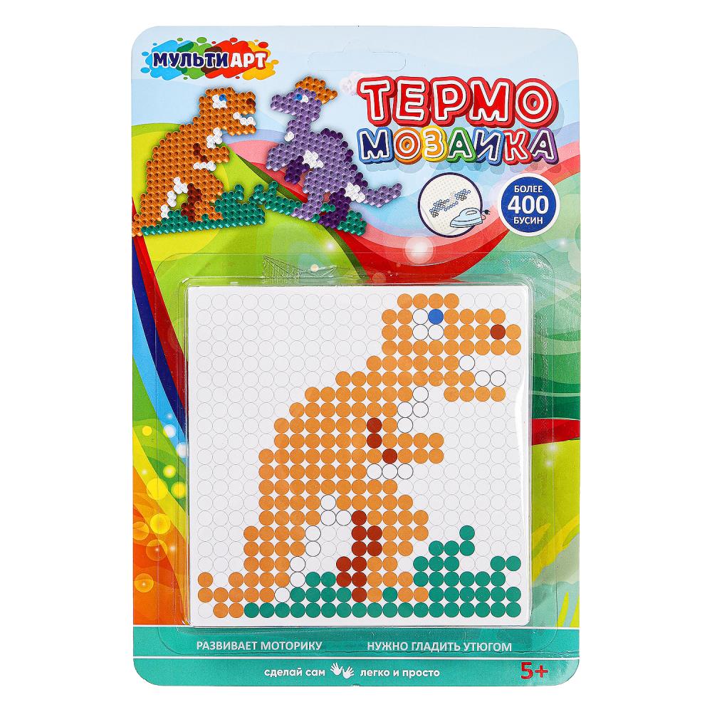 Из разноцветных бусин, входящих в данный набор, юный художник сможет собрать 2 фигурки динозавров. Чтобы зафиксировать рисунок, бусины нужно накрыть специальной пергаментной бумагой и прогладить нагретым утюгом. ВНИМАНИЕ: проглаживать поделку может только взрослый! Получившиеся фигурки можно будет использовать для дальнейшей игры.