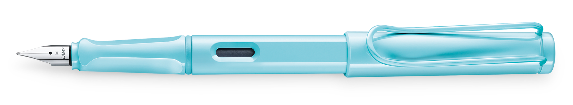 LAMY SAFARI сделана из «неубиваемого» АБС пластика (кубики Lego), стальной клип (прижим) прямо-таки антивандальной конструкции – крепко держится за все, к чему его прикрепляют: карман, обложка ежедневника, рюкзак и т.д. В корпусе есть две прорези-окошка, через которые можно видеть остаток чернил, не раскручивая при этом ручку. Ручка пишет мягко, как по маслу, даже по бумаге низкого качества. Линия ровная, не расплывается. Включает в себя один картридж с синими чернилами LAMY T10.
