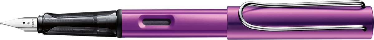 Корпус и колпачок из анодированного алюминия. Эргономичный хват, позволяющий пальцам принять правильное положение при письме. Изготовлен из прозрачного пластика. Металлический клип на колпачке напоминает по форме канцелярскую скрепку. Окошко на корпусе позволяет контролировать расход чернил. Стальное заменяемое перо.