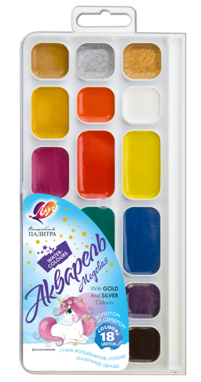 В наборе две кюветы акварели золотого и серебряного цветов