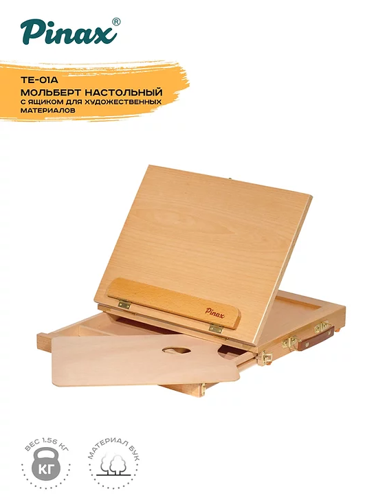 Встроенный ящик для хранения художественных принадлежностей и палитры (поставляется в комплекте с мольбертом). Удобная ручка для переноски позволяет взять его на пленэр и использовать как компактный этюдник. Резиновые подпятники противостоят скольжению по поверхности стола. При использовании с холстом на подрамнике рекомендуемый высота холста в пределах 30см.