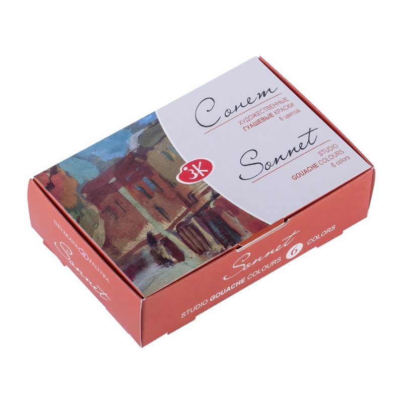 Гуашевые краски «Сонет» предназначены для создания учебных работ, макетов, декора и иллюстраций. Краски изготовлены по новой технологии, аналогичной производству акриловых красок: в рецептуре использованы пигментные пасты (а не пигменты как в профессиональной гуаши «Мастер-Класс»), а в качестве связующего - синтетическое связующее (в отличие от профессиональной художественной гуаши серии «Мастер-класс», рецептура которой включает гуммиарабик).