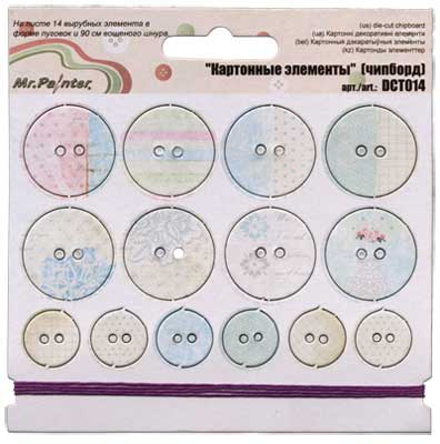 На листе 14 вырубных элементов в форме пуговок и 90 см вощеного шнура.