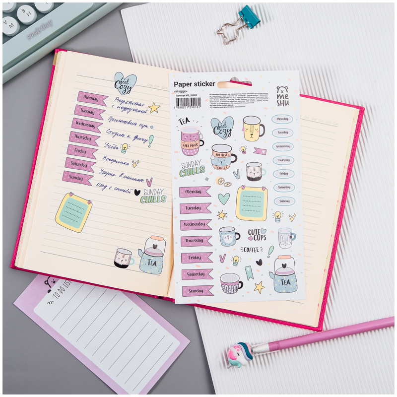 Бумажные наклейки подойдут также для украшения канцтоваров, открыток, поделок, телефонов, ноутбуков, предметов интерьера. Яркие современные дизайны от MESHU сделают творческий процесс увлекательным и подарят отличное настроение. Наклейки представлены с европодвесом.