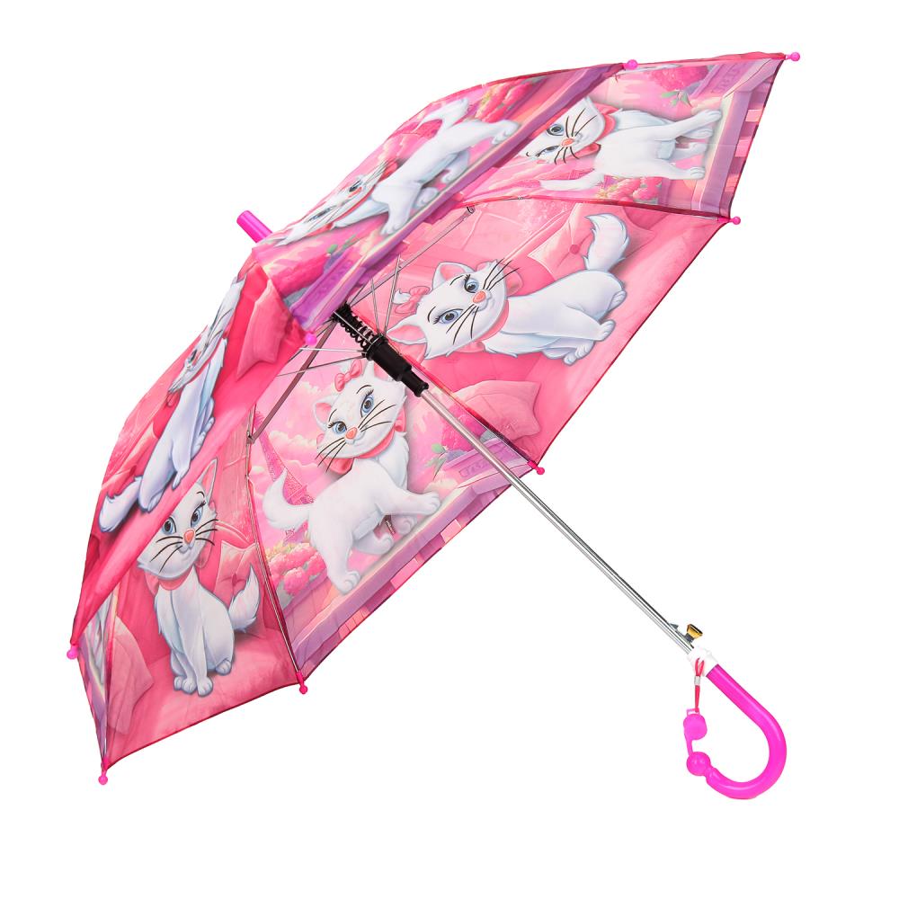 Зонт-трость легко раскрывается при нажатии на кнопку, складывается вручную. Рукоять имеет удобную форму, а каркас выполнен из облегчённых материалов, поэтому держать зонт ребёнку не составит особого труда. В целях безопасности концы спиц, наконечник зонтика, ручка и фиксатор выполнены из пластмассы и не травмоопасны.