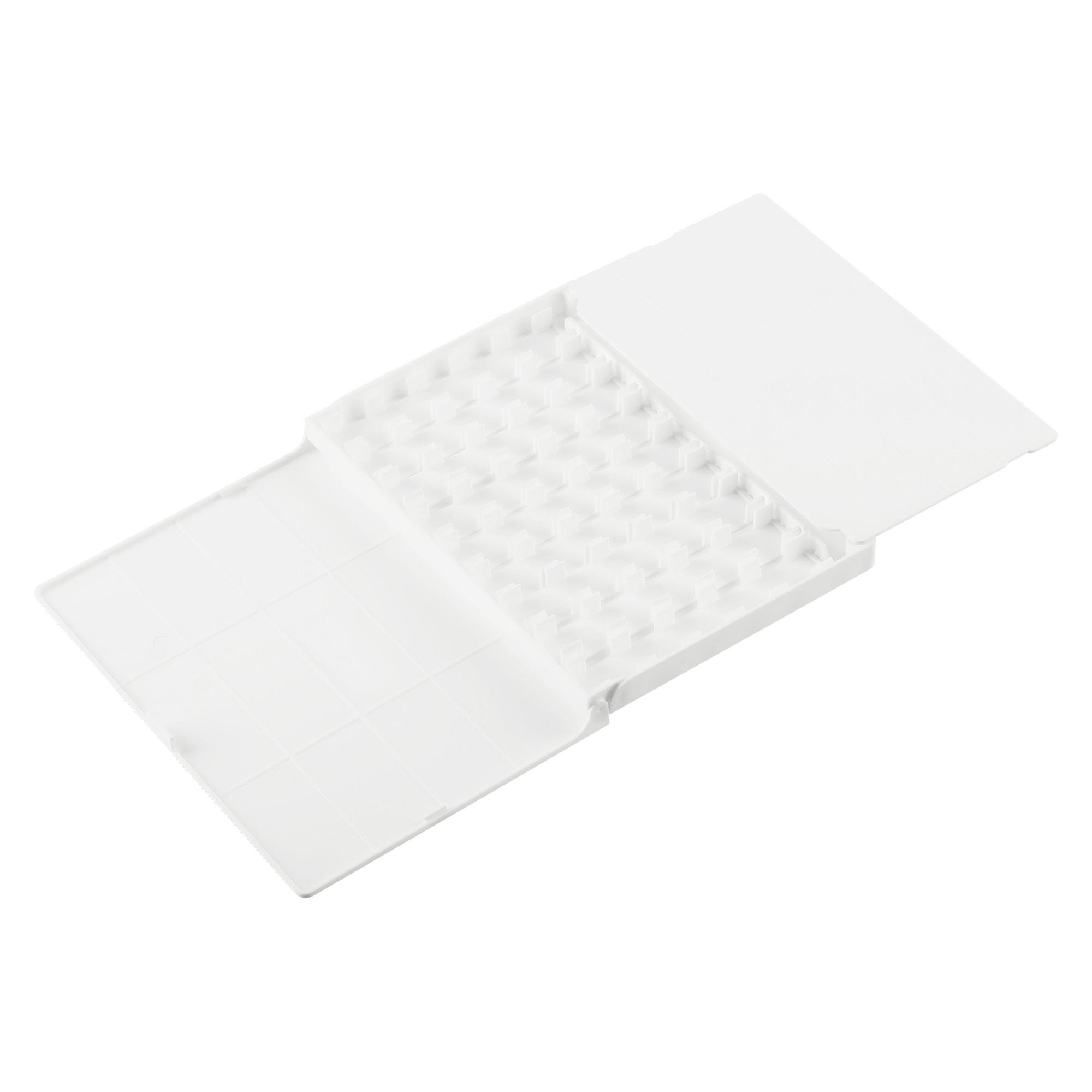 Пенал подходит для пленэров и путешествий, также для обучения и работы в студии и дома. Он легкий и компактный, предусмотрено место для хранения кисти. Размер состаляет 21,7*15,4*2,2 см. Оснащён дополнительной съёмной палитрой для смешивания красок. Пенал и палитра белого цвета ? для чистого смешения оттенков. Кюветы надёжно фиксируются в съемных вкладышах-держателях. Пенал подходит для создания индивидуальной палитры цветов и хранения кювет с любимыми цветами.