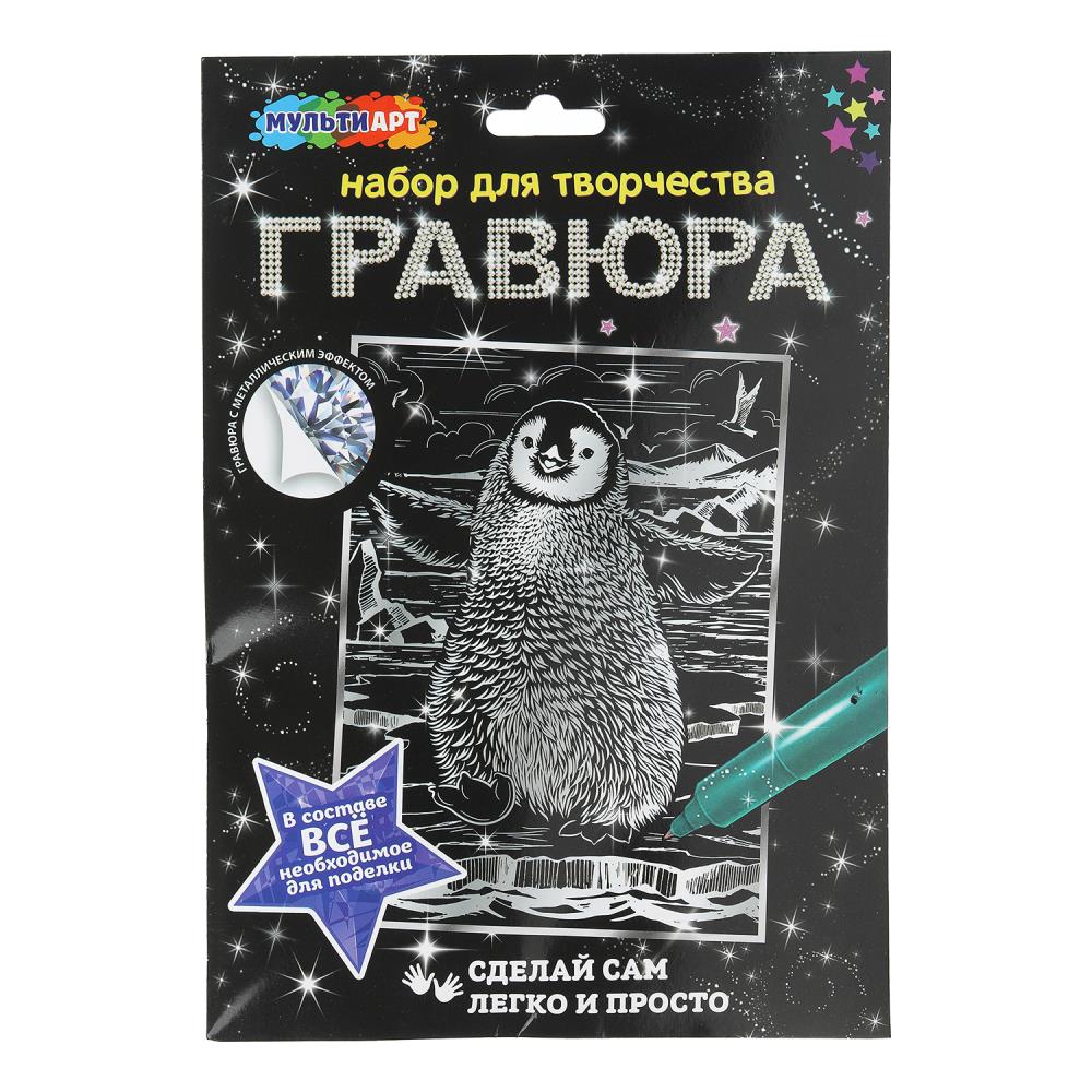 С помощью данного набора юный художник сможет создать эффектную серебристую картину на чёрном фоне. Контур рисунка уже нанесён на основу, остаётся только процарапать изображение специальным штихелем. Можно не повторять каждую черточку, главное — соблюдать направление штриха! Готовая поделка станет отличным вариантом для подарка близким или для украшения интерьера комнаты.