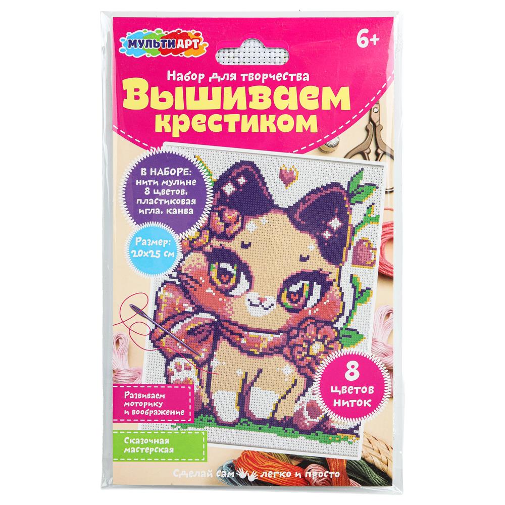 При помощи этого набора, маленький художник сможет создать красивую вышивку с изображением очаровательной кошечки. В целях безопасности игла из набора изготовлена из пластика и специально затуплена. Яркую поделку можно вставить в рамку и подарить близким или использовать для украшения комнаты.