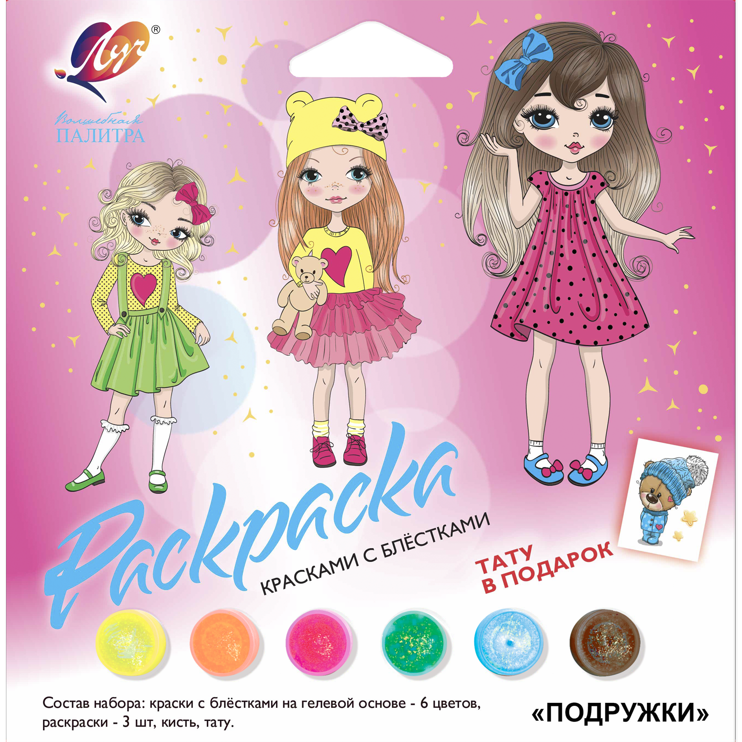В набор для детского творчества входит 3 карточки с изображением стильных принцесс, кисть «Пони» №3 для раскрашивания и яркие флуоресцентные краски на гелевой основе с миллиардами блёсток! Гелевые краски прекрасно смешиваются между собой и позволяют получить большую палитру дополнительных оттенков. Такой набор - отличный подарок каждой принцессе и моднице. Так же в каждый набор вложен подарок - яркая татуировка (смываемая и переводная картинка) с изображением милых мультяшных персонажей. На обороте есть инструкция по работе с набором и применением тату!