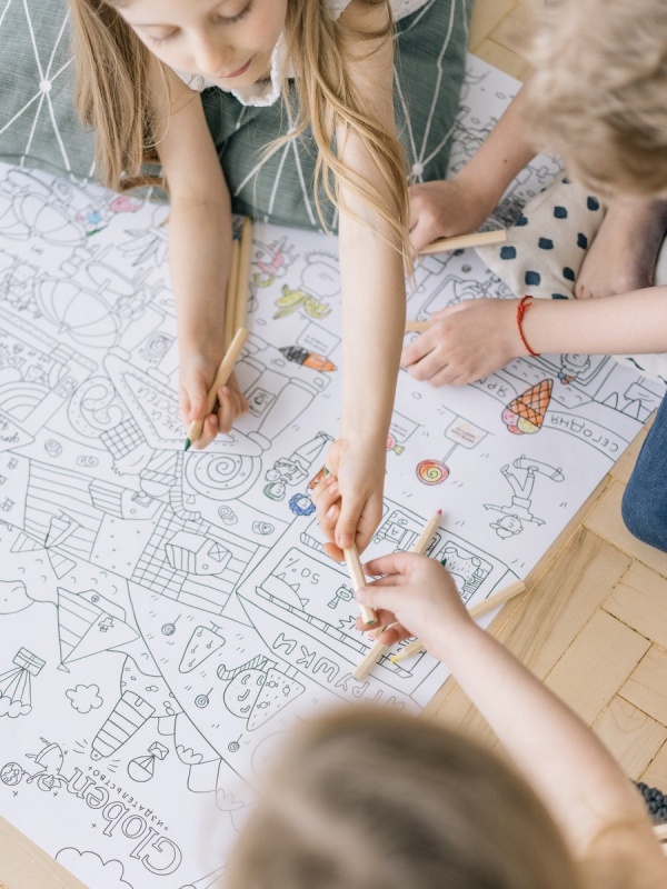 Расстелите плакат на полу или повесьте на стену, предложите ребенку на выбор - карандаши, краски или фломастеры. Дайте свободу детскому творчеству!
